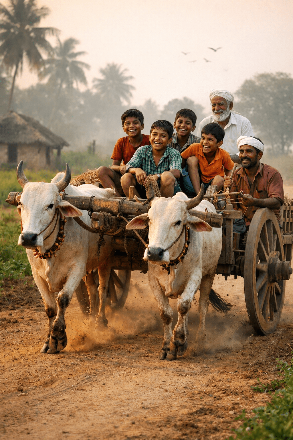ಎತ್ತಿನ ಬಂಡಿ ಬಂದು ಮನೆ ಮುಂದೆ ನಿಂತಾಗ ಹುಡುಗರಿಗೆ ಸಂಭ್ರಮವೋ ಸಂಭ್ರಮ.
