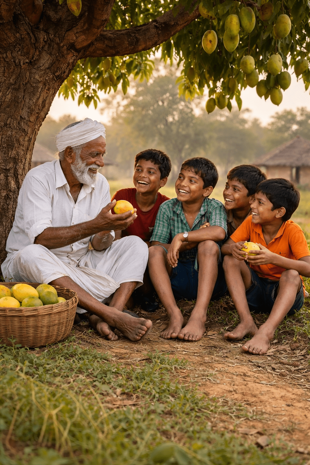 ಅಲ್ಲಿ ಹುಡುಗರಿಗೆ ಅನೇಕ ಮಾವನ ಹಣ್ಣುಗಳನ್ನು ನೀಡಲಾಯಿತು.ಅವರು ಅಲ್ಲಿಯೇ ಅದನ್ನು ತೊಳೆದು ಕಚ್ಚಿ ತಿಂದರು.