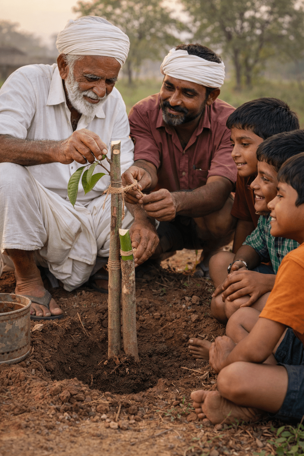 ಆ ದೊಡ್ಡ ಹೊಲದಲ್ಲಿ ಅನೇಕ ರೀತಿಯ ಹೂ ಗಿಡಗಳು, ತರಕಾರಿ ಗಿಡಗಳನ್ನು ತಾತನವರು ಮಕ್ಕಳಿಗೆ ಪರಿಚಯಿಸಿದರು. ನಂತರ ಅಲ್ಲಿಯೇ ಇದ್ದ ಇನ್ನೊಂದು ಮಾವಿನ ತೋಟಕ್ಕೆ ಮತ್ತೆ ಎತ್ತಿನ ಬಂಡಿಯಲ್ಲಿ ಕರೆದುಕೊಂಡು ಹೋದರು.